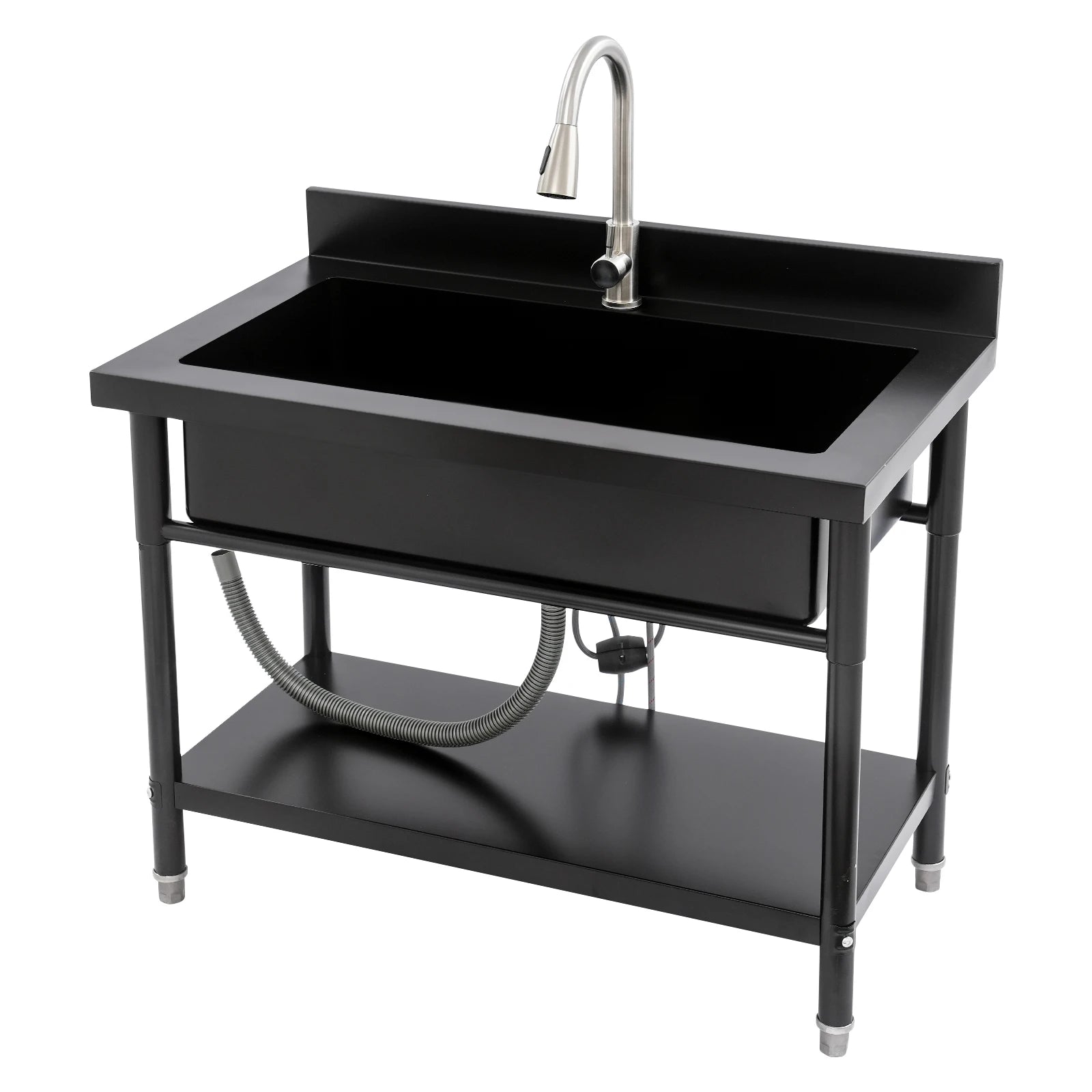 Stainless Steel Freestanding Utility Sink - Single Bowl with Pull-Out Faucet for Effortless Cleaning