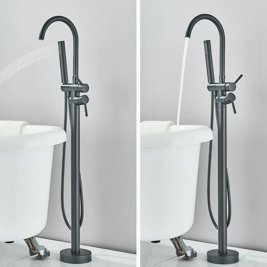Luxury Living Black Bathtub Faucet with Hand Shower - Floor Mounted, Hot & Cold Water Control